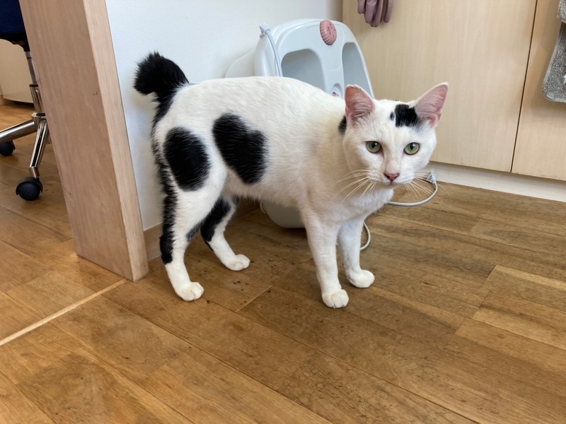 | 特徴(性格など) | 肩にも膝にも乗ります。小型です。とっても甘えん坊で、人にくっついているのが好きで、触られるのが大好きです。耳の中も嫌がらずに拭かせてくれます。まったり、ごろんごろんしてたっぷり触らせてくれます。びびりやなので、他頭飼いには向かないと思います。手術した先生からも極めて性格の良い子とお墨付き。猫じゃらし大好きで沢山遊びます。本当に人間に警戒心がなく、すぐになつきます。暴れたりもしません。キャリア検査でAIDS、白血病等陰性です。 | ||