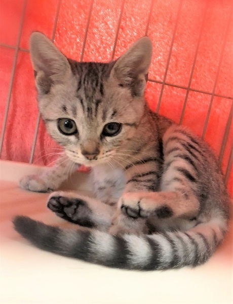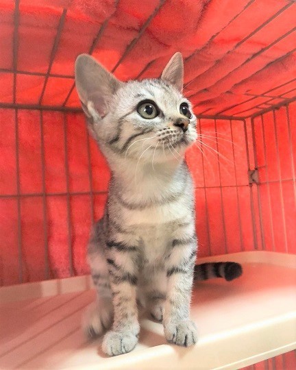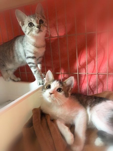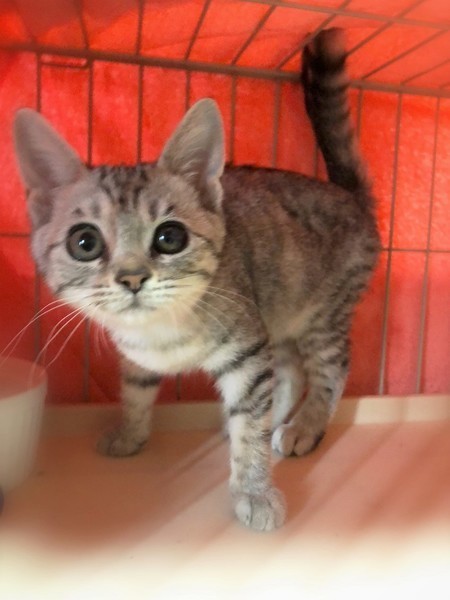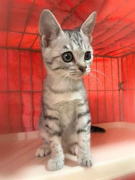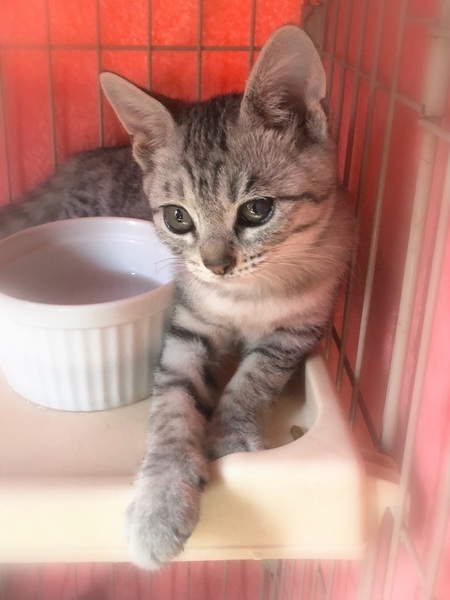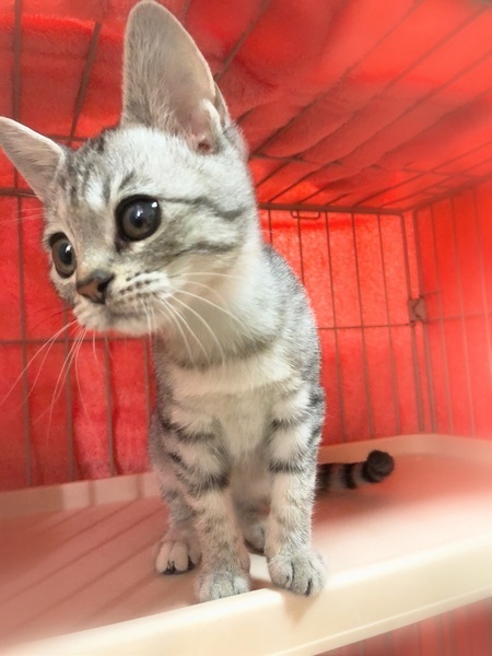 | 特徴(性格など) | 現在、2.5ヶ月くらい丸顔・ぽ〜っとした表情・明るいサバトラ色の女の子 何事にもあまり緊張のないのほほんとした性格。 人も大好きで、カメラを向けると近づいて来ていつもアップが撮れ気味です。 遊ぶ事も大好きですが、やっぱりのんびりと張り切って遊んでいます。 |