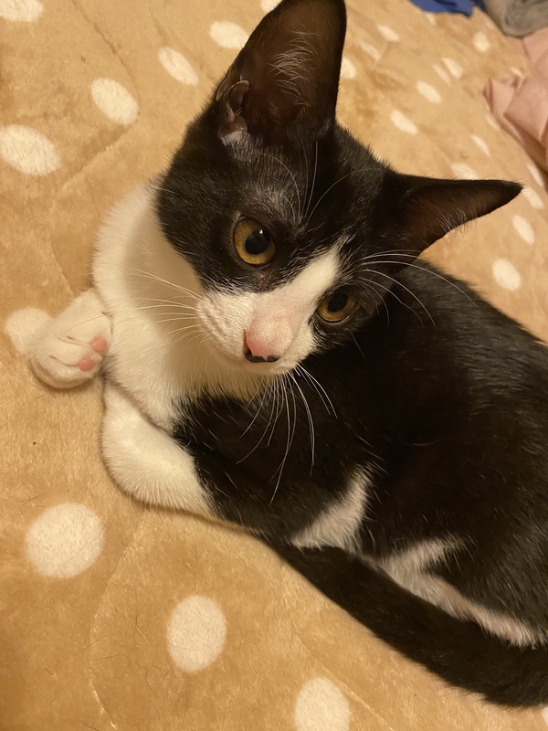 | 特徴(性格など) | ハチワレ鼻ぶちの牛柄ちゃん まだまだ子猫ちゃんなので元気いっぱいのやんちゃな女の子です、トイレはしっかりおぼえています☺️ |