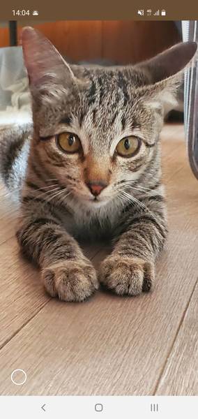 | 特徴(性格など) | 柄…キジトラ 性格…甘えん坊で猫じゃらし大好き、抱っこOK |