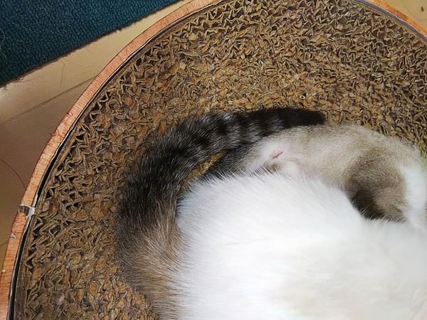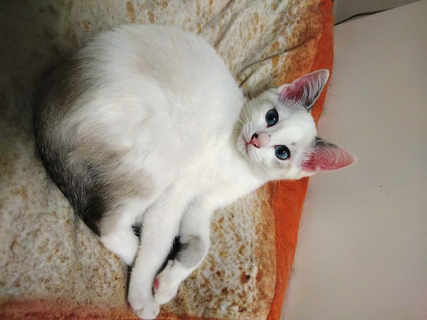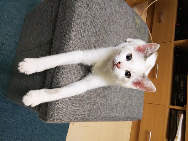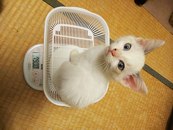 | 特徴(性格など) | 野良猫の母親から生まれ外をうろうろしている所を保護しました。 シャム系トラ模様、目が綺麗な青色です。 尻尾がシマシマでまっすぐです。 とても人懐こく、我が家の猫たちにも物おじしないため、おそらく先住猫さんがいても仲良く出来ると思います。 |