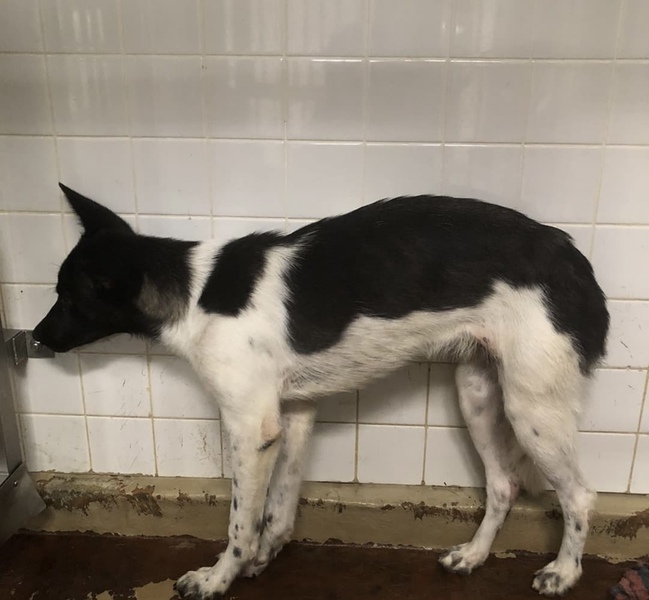 | 特徴(性格など) | 白黒模様の幼い女の子 怖くて怯えています 唸りも威嚇もありません 体重12.3kgくらい 後ろ足1部脱毛がみられます |