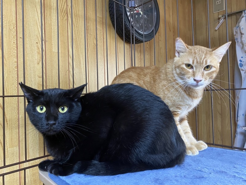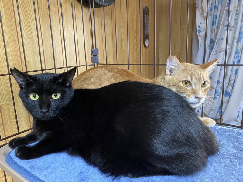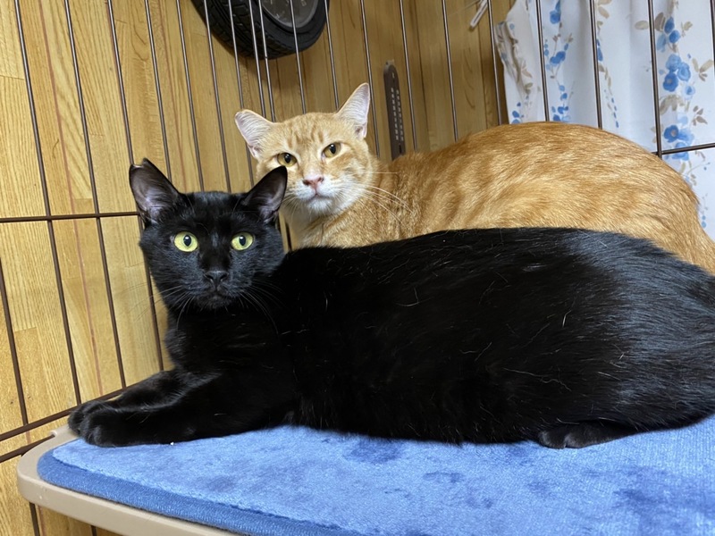 | 特徴(性格など) | おっとりした黒猫の男の子です。 名前は「さっちも」 一緒に写っている茶トラ猫「にっちも」の兄弟です。 ゆったりとしてて甘えん坊さんです。 血液検査エイズ白血病共に陰性。 |