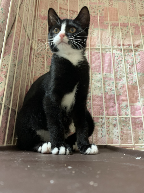 | 特徴(性格など) | ハチワレちゃんは慎重派で物静かな子です。 ごはんは好き嫌い無くよく食べます。 人慣れ訓練中で、抱っこはまだ出来ません。触る事は出来ます。 トイレトレーニング済みです。 |