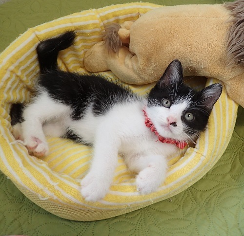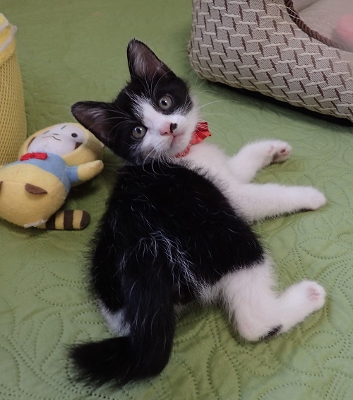 | 里親募集する理由 | 保護された時はまだ小さい赤ちゃん猫で、驚くほどの低体重でした。目を離せられない状態だったのですが、大変に食欲旺盛。その食欲は今も続いています(笑) 元気でゴロゴロ甘えん坊、本当に可愛い子です。 | ||