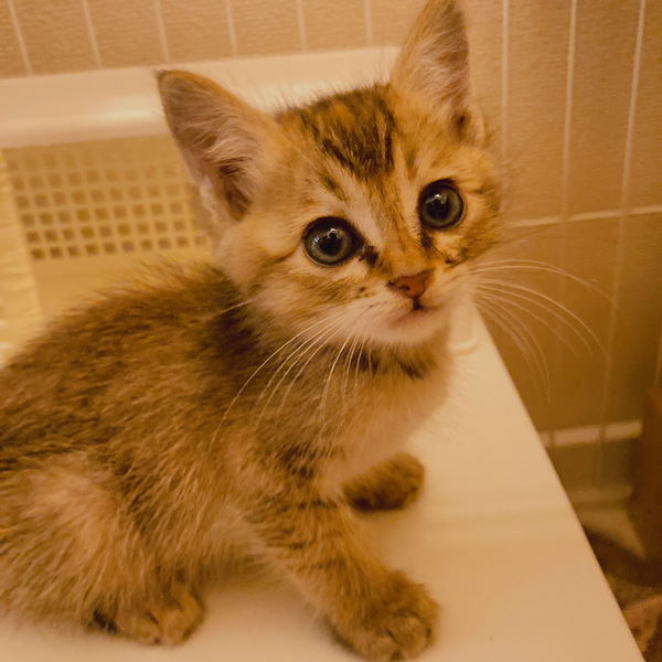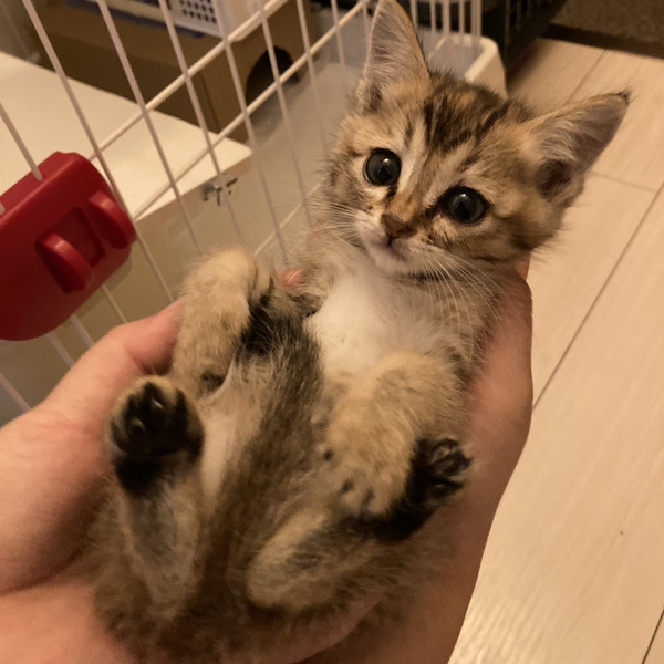 | 特徴(性格など) | 人慣れ ★★★★★ 食欲 ★★★★★ やんちゃ ★★★☆☆ 運動神経 ★★★★☆ 4匹の兄妹のうち、誰よりも人慣れしている警戒心ゼロな子猫。 うちの先住猫にもフラフラ近寄っていきます。 先住ペットがいらっしゃるおうちにも早く馴染めそうです。 兄妹の中で一番体が小さいのですが、ご飯の時はいつも一番最初にやってきます。 いつも他の子猫たちに飛びかかったり、ケージや爪とぎをよじ登ったりして遊んでいる運動神経高めな子猫です。 好奇心旺盛&警戒心ゼロなこともあり、猫じゃらしにもすぐ反応してくれます。 猫と一緒に遊んだりしたい方と相性がいいかもしれません。 【柄】 キジトラ 【性別】メス 【体重】610g 【エイズ白血病検査】陰性 【ワクチン】3種混合ワクチン1回目済 【現在の治療経過】猫風邪・虫下し治療中 ※2021.10.8時点 |