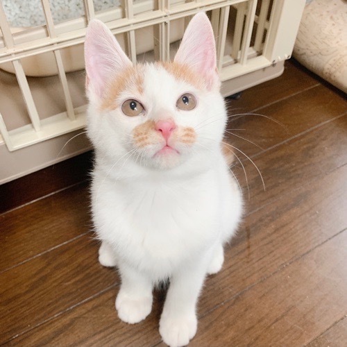 | 特徴(性格など) | お口模様がとってもキュートな白茶男子。 しっぽは短い鍵しっぽです。 お外でごはんを貰っていたころから警戒心がほとんどゼロの、のんびりノーテンキな性格で、保護して環境が変わってからも臆することなくすぐに馴染んでくれました。 遊びが大好きで、おもちゃの音が聞こえればどこにいても飛んできます! 抱っこをすると幸せな気持ちになる、ふわふわの毛並みです♪ そっくりすぎる妹の新月ちゃんと一緒のお迎えも大歓迎です♪ |
