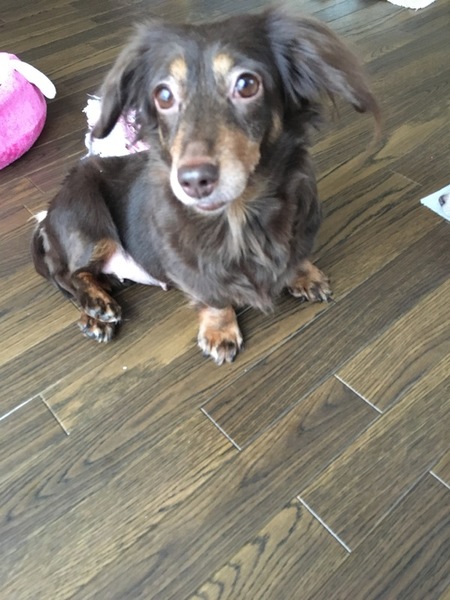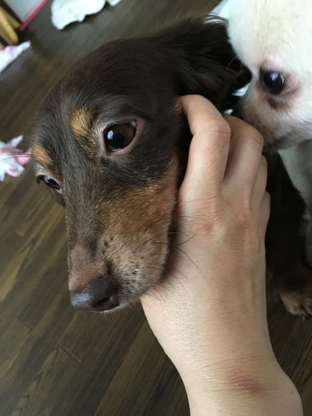 | 特徴(性格など) | ロングヘアのチョコタンです。 大人しく無駄吠えしません。 トイレトレーニング中です。 基本的にトイレシートにするようになりました。リードをつけての散歩はまだ慣れていなくてできませんが、 庭に放すと楽しそうに歩きます。 外でおしっこ、うんちもします。 呼ぶとすぐ来るのでとても可愛いです。お留守番できます。 気づくと人の横でちょこんと寝てます。 健康状態良好です。 遺伝子検査クリアです。 レントゲンの結果、ヘルニアありません。 歯石はある程度取りました。 |