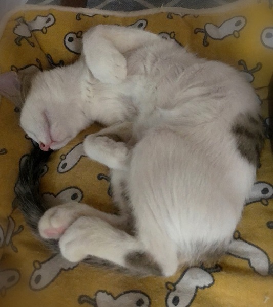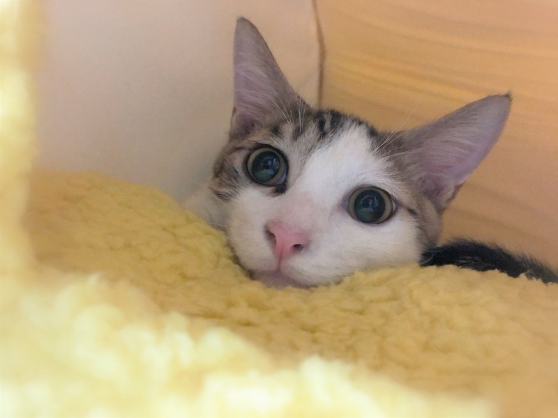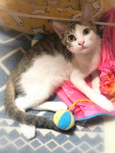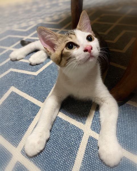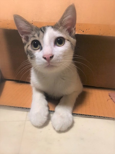 | 特徴(性格など) | 鼻ピンク・きじ白男の子 環境に慣れるまで、1週間ほど時間が必要です。 心を開くと、とんでもない甘えん坊になります。 ソファーに座っていると膝の上、眠る時は胸の上に乗りゴロゴロ~ 撫でられると嬉しくてぐるんぐるん回って喜びを表現します。 |