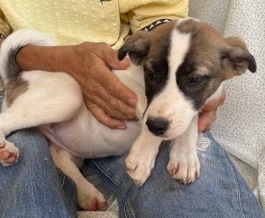 | 特徴(性格など) | 「とまと」くん(♂)、「ちい」ちゃん(♀)と兄妹です。 「とまと」くんとそっくりですが、頭に丸の模様があるのがまるちゃん。 ピカイチの人懐っこさで、元気いっぱいです。 |