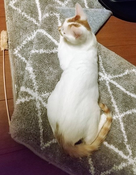 | 特徴(性格など) | 頭と尻尾だけが茶色で体は真っ白のキレイな男の子です。ゴハンを食べるのが大好きでお皿を見ると寄ってきてスリスリします。保護当初は臆病でしたが馴れてきて膝に乗ったり抱っこもできるようになりました。 | ||