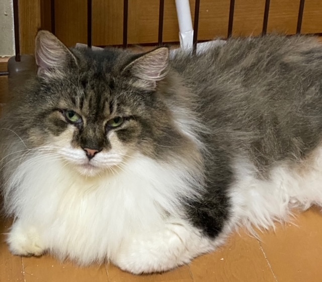 | 特徴(性格など) | 名前:レミー ♀ 推定年齢10歳くらい ノルウェージャンフォレストキャットになります。 劣悪な環境に居たため療養期間が半年以上になりましたがとっても元気になりました。 虐待に近い環境で10年近く繁殖猫として生きてきた子です。でも性格は温厚で可愛い子です。 保護当時は毛があまりなく所々禿げていましたが、今はゴージャスな毛吹きになりました。 シニアですので、のんびり暮らして欲しいです。そのため、先住さんはいないお家を希望します。 |