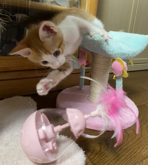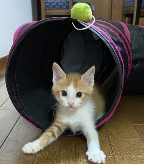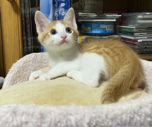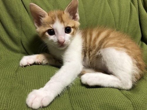 | 特徴(性格など) | おっとり系の性格でのんびり屋さんで甘えん坊のとても可愛い男の子。 抱っこも大好き!他の猫ちゃん達とも仲良く遊べます。 茶白/体重1キロ/尻尾は長くて真っすぐ/健康状態は良好/ エイズ・白血病の血液検査済み(陰性) |