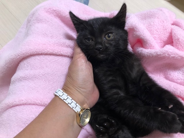 | 特徴(性格など) | 仮名:ポポちゃん(黒猫・長尻尾) 初期医療:済み ウイルス検査:陰性 3種混合ワクチン接種:済み 検便・ノミダニ駆除薬:済み 10月4日:850g とても可愛い黒猫仔猫で、兄弟で保護しました。 保護した時は1.5ヶ月くらいでしたがので、現在は2.5ヶ月くらいです。 食欲もありよくフードを食べています。 穏やかな性格の賢い子でナデナデ抱っこも大好きです。 1匹でも可能ですが、兄弟一緒かお留守番の少ないお家を希望します。 |