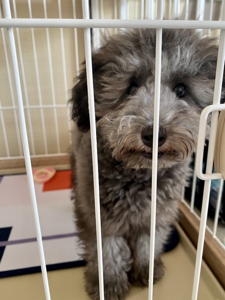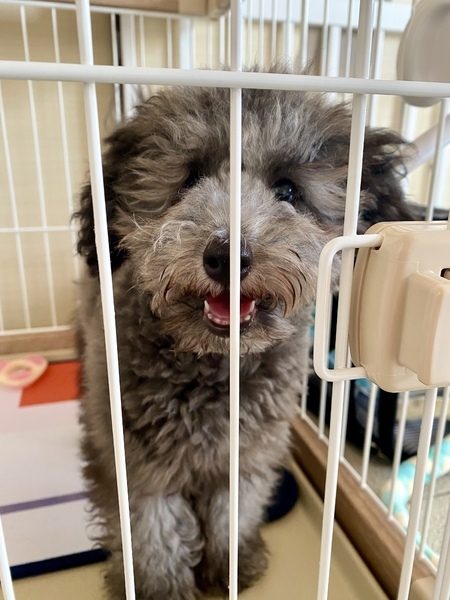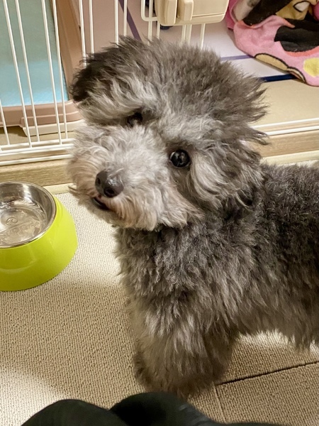 | 特徴(性格など) | ◯ 毛色:シルバー ◯ 誕生日:2021年5月2日 ◯ 体重:1.8kg ◯ 血統書あり ◯ 狂犬病ワクチン接種済 ◯ 混合ワクチン接種済(来年以降8月18日頃の接種が望ましいです) シルバーのトイプードルです。父がホワイトで母がシルバーのため、将来的には今よりホワイトの色味が強くなるかもしれません。 性格に関しましては、まだ5か月のため定まっていないのかなと思いますが、今はおもちゃ等で遊ぶのが大好きで、甘えん坊です。ですが、遊んでいる最中に手を甘噛みしてくることがたまにあります。現在は、ボールと布製の引っ張り合えるおもちゃが気に入っている様です。 夜はケージの中で寝ており、夜鳴きすることが以前はありましたが、見える位置で寝てあげると安心してよく寝てくれます。一緒にベッドで寝ることはしていません。 食事は現在「ニュートロ ワイルドレシピ 子犬用 ターキー」で一日70gを2回に分けて、半分ふやかし、半分通常であげています。 今後徐々にふやかしていないフードの比率を上げていくのが良いかと思います。日によって、よく食べる日とそうでない日があります。コングなどにフードを詰めて、留守番時にゲージの中に置いておくと、食べてくれることがあるので、お勧めです。 おしっこはトイレトレーでできる確率が最初の頃から上がってきており、現在50%程度です。失敗する時は、ほとんどがタオルなどの柔らかい所でしてしまうので、それらを置かないようにしていただくと、よりスムーズにしつけができるのかなと思います。ウンチはまだまだですが、食糞は今の所していません。 留守番は最大5時間までしか挑戦していませんが、ケージの中で大人しくしてくれています。ほとんど寝ているようです。 今年分のワクチンは全て終わっていますが、散歩デビューはまだしていないので、抱っこしながらの散歩など、外の景色慣れから始めていただけると良いかと思います。 |