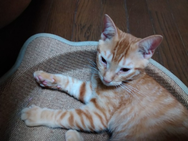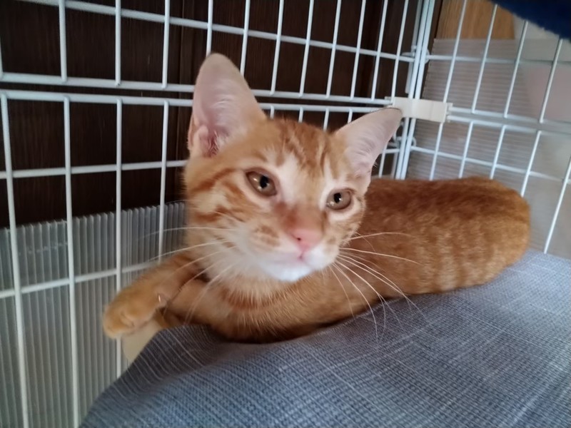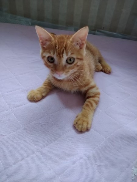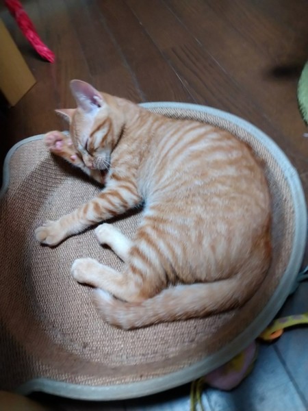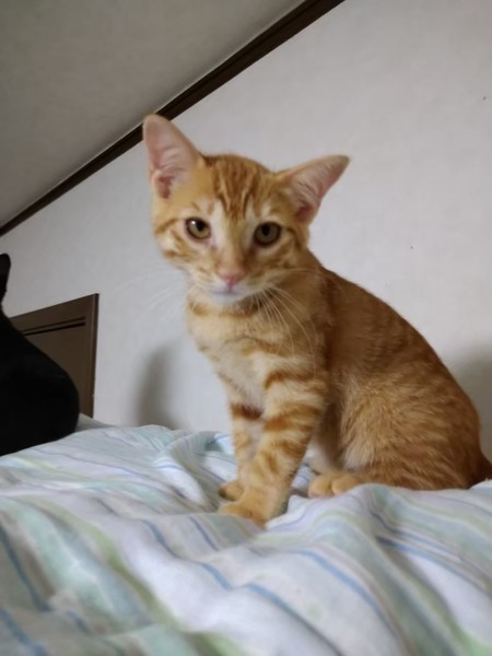 | 特徴(性格など) | 2021.4.26生まれ(推定) 毛色:茶トラ しっぽの長い茶トラの男の子。 食べる事が大好きです。 一緒に保護された子達の中ではカラダは小さいですがとても元気です。 転がるおもちゃをみんなで追いかけて遊んだり、 キャットタワーのおもちゃをパンチして遊ぶのも大好きです。 少し人見知りですが段々と慣れると思いますので、 アソウのペースに合わせて下さる里親様と出会えたら嬉しいです。 |