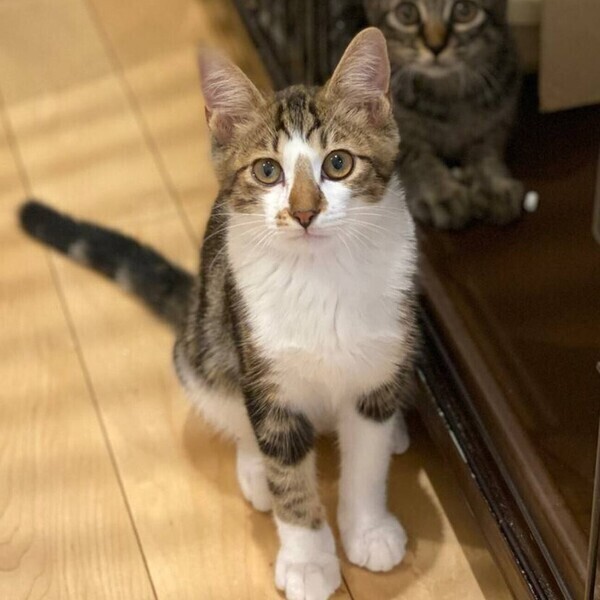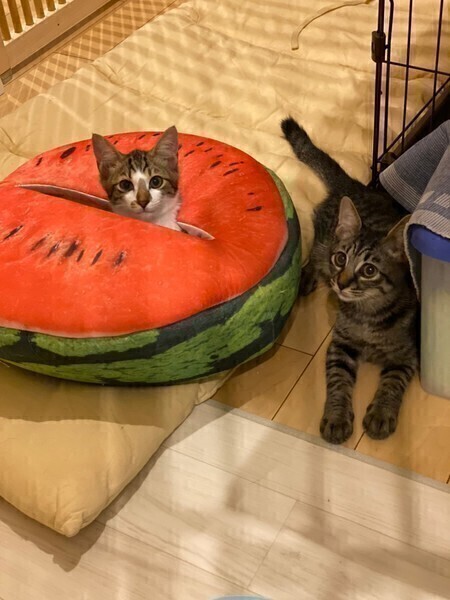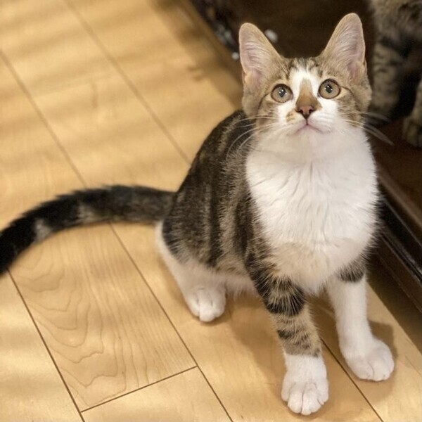 | 特徴(性格など) | ◆ケバブくん おっとり系のキジ白の男の子 ○神奈川県横須賀市内にて保護されました。 ○推定7ヶ月くらい(2022年1月中旬時点)のキジ白ハチワレの男の子です。 ○尻尾は長くて真っ直ぐです。 ○鼻中央にワンポイントがあります。 ○アメリカン・ショートヘアのような柄の上着を羽織っているように見えます。手足は白ソックスをはいているかのようです。 ○猫らしい人見知りはありますがあまえてすりごろになりました。 ○おっとり系でやさしい男の子です。 ○ビビりなので兄弟のバーガーと一緒に迎えてくださる方、気長に慣れるのを待ってくださる方希望です。 ★ワクチン2回済み。不妊手術済み。 ★猫エイズ、猫白血病ともに陰性。 ★ウイルス性結膜炎がありましたが、点眼治療でほぼ完治しました。右目はごくたまに涙目になることがあり、その時のみ点眼しています。 ◯YouTubeにも動画をあげています。こちらもご覧下さい。 ケバブ(ちょっとバーガーも) https://youtu.be/AXXNf-0RagU ケバブとバーガー https://youtu.be/XCRCHh2tnDY ケバブとバーガー ふたりで首振り https://youtu.be/I8uVm1DQKRk ケバブとバーガーとビータ https://youtu.be/UtORPrVwaGk ケバブその1羽根の猫じゃらし https://youtu.be/kj2JemytGi4 ケバブその2 膝の上 https://youtu.be/jxQ7Sxsj7Mw ケバブその3 洗濯機型の箱 https://youtu.be/9VClItElDU0 ○1/23(日)開催の譲渡会に参加予定! 以下の要項をお読みいただき、ぜひ会いに来てください♪ ☆★☆★☆★☆★☆★☆★☆★☆★☆★☆★☆ ~1月23日(日)荏田にて譲渡会開催!~ ◎場所・・「島忠 荏田店」 神奈川県横浜市青葉区荏田西1ー3ー14 田園都市線「江田」駅より徒歩約7分 246号線江田駅交差点そば ◎日程・・1月23日(日)(雨天決行) ◎時間・・13時から16時 【15時30分受付終了】 (会場に利用可能な無料駐車場がございます。そちらをご利用くださいませ。) 今回はコロナ対策のため、制限を設けての開催となります。 *3密対策のため、当日12時30分より整理券を配布いたします。 *各回15分 *各回先着3組様 *参加の際は、マスクの着用、アルコール消毒のご協力をお願いいたします。 *当日は検温の上、体温が37度以上の方はご参加いただけません。 *混雑状況により、中止させていただく場合がございます。 ※参加予定の犬猫は体調により参加できない場合があります。ご了承ください。 ☆★☆★☆★☆★☆★☆★☆★☆★☆★☆★☆ |