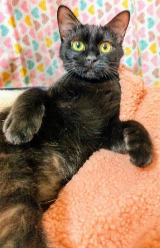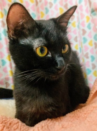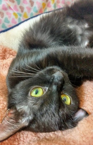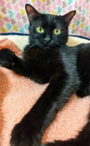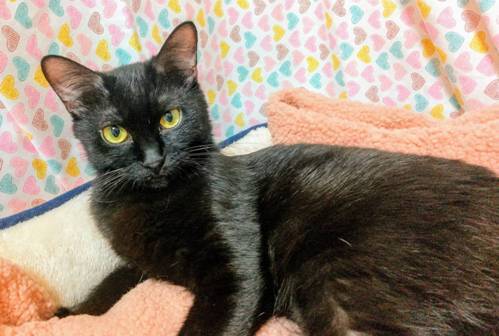 | 特徴(性格など) | 【仮名】あんみつちゃん 【性格】真っ黒ツヤツヤで小柄なあんみつちゃん☆ 人が大好きな甘えん坊な子です。(猫より人が好きなタイプ) まだ1歳ですが落ち着きがあり人にピッタリ寄り添って過ごせます。 1匹を溺愛したい方におススメの女の子です♪ ※1匹譲渡可 |