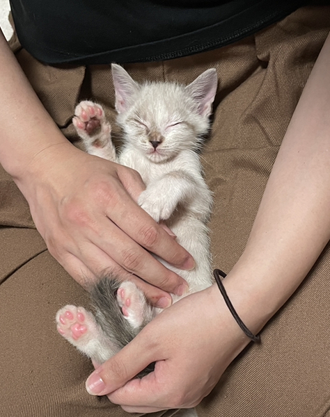 | 里親募集する理由 | 瀕死の状態で保護され、いのちを繋いだ子です。 現在一時預かりしている家では他にも複数の猫がおりずっと飼うことはできませんので、大切にしてくださる家族を必要としています。 |