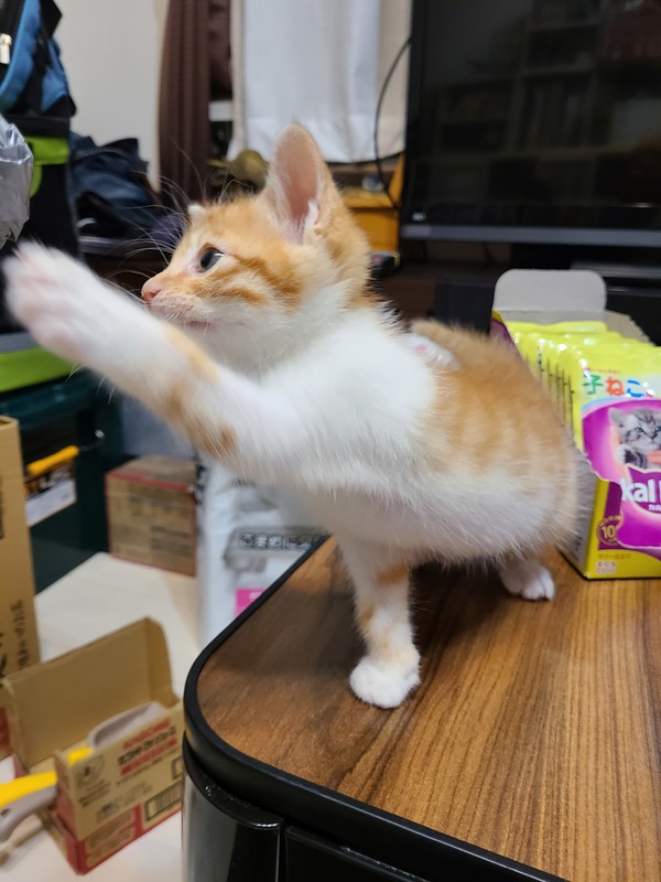 | 特徴(性格など) | 茶白の「おミソ君」です! 生後間もなくお母さん猫が居なくなってしまい、たまたま同時期にお産して授乳してた猫ファミリーに途中参加させてもらい(笑) 優しいお母さん猫に授乳してもらって命をつなぎました! とても可愛く将来イケメン間違いナシです 性格は子猫らしく遊んで遊んで!と元気いっぱい! よく遊び、よく食べ、よく…出してます(笑) 茶白の短毛、お腹はポンポコリン お世話してる私の背中や肩に乗ってくるような甘えん坊のところも、あります! |