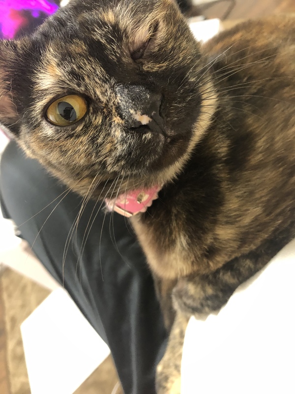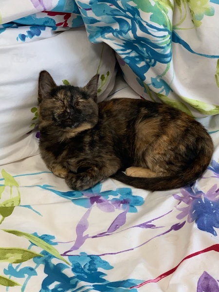 | 特徴(性格など) | サビ猫のクウちゃん生後7ヶ月です。 かなり人懐っこくて性格の良い子です。 珍しいですが警戒心が全くなく、誰の膝の上でもすぐ乗って寝てしまいます。 元気よくニャーニャー鳴きます。 左目が生まれつき癒着していますが、手術で治ると言われています。 健康状態は良好です。 三種混合ワクチンは1回目接種済ですが、2回目はまだです。 避妊手術していません。 |