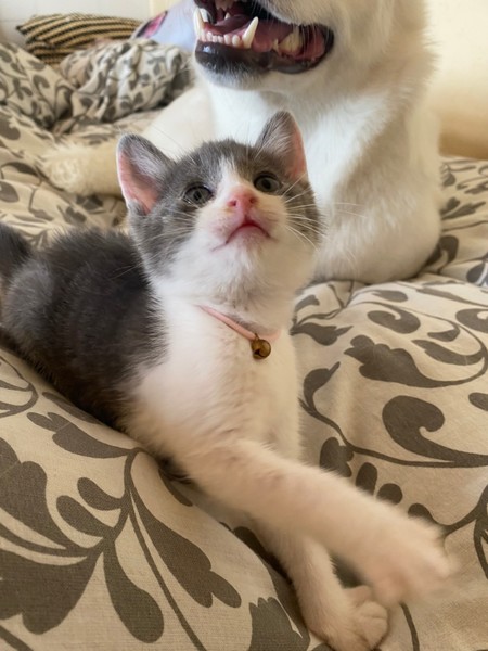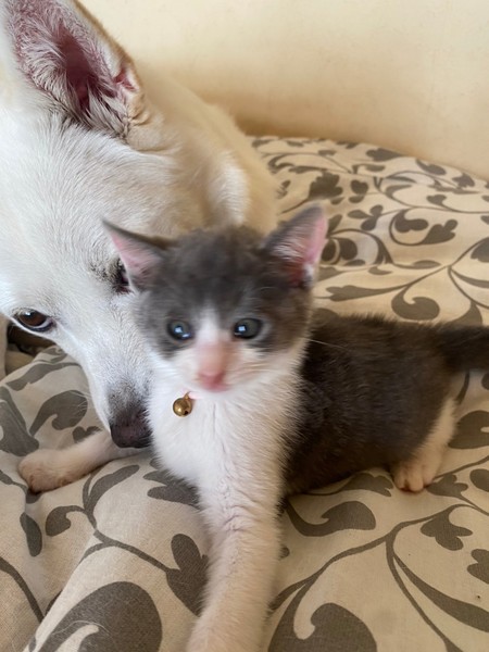 | 特徴(性格など) | 自転車のかごに捨てられていたところを保護されました。おっとりしていて天然な子ですww とても甘えたで、眠たくなると膝に乗ってきます♪ 2か月くらいでまだまだ小さいですが、元気に成長しています。 |