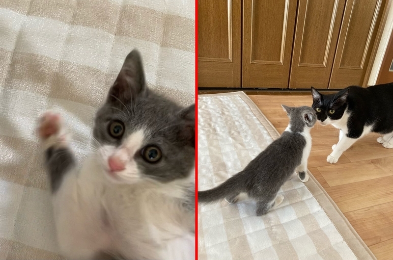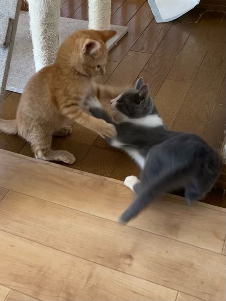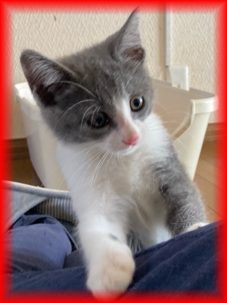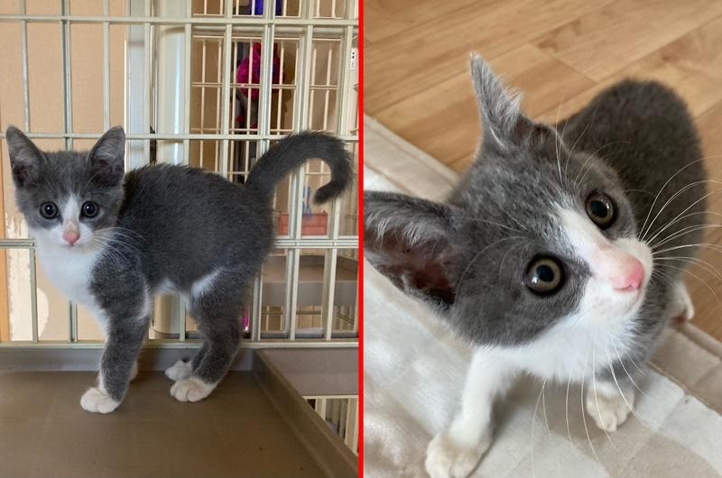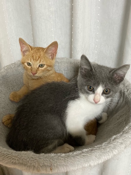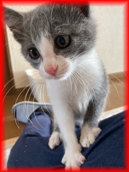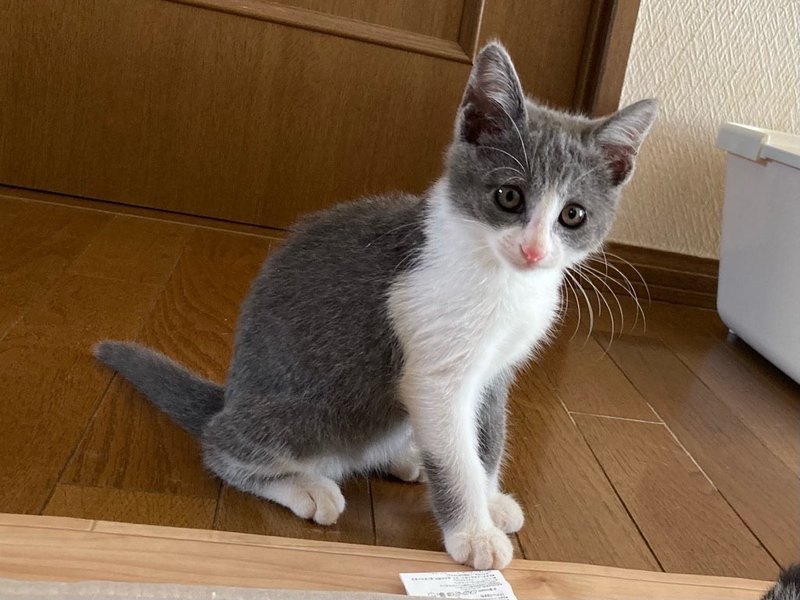 | 特徴(性格など) | 仮称…ケン太 2ヵ月位のグレー白の男の子です。 食欲旺盛、元気いっぱい爆走ニャンです。 ちょっとビビりさんではありますが、抱っこするとゴロゴロ喉を鳴らしてくれます♪ 別で募集している茶トラの「ポン太」と仲良く走り回っています。 2人一緒のご縁を希望しております。 ・レボリューション(駆虫薬)滴下済 ・便検査済 ・ワクチン1回目済み |