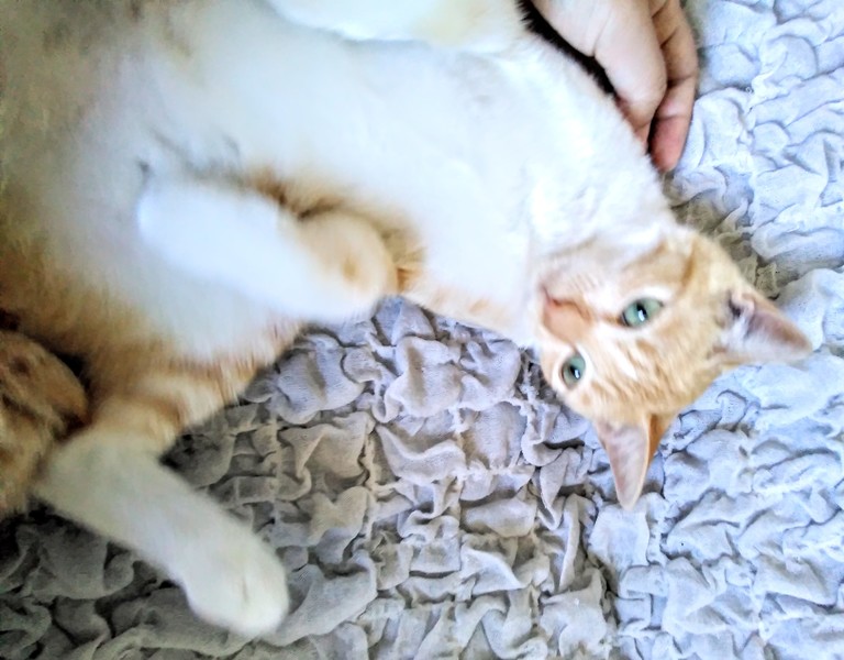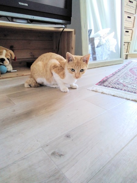 | 特徴(性格など) | おっとり甘えん坊です。静かな性格です。見つけた時からお腹を見せてゴロゴロしておりました。しっぽは短く丸まっています。毛艶も良く美人猫ちゃんです。 | ||