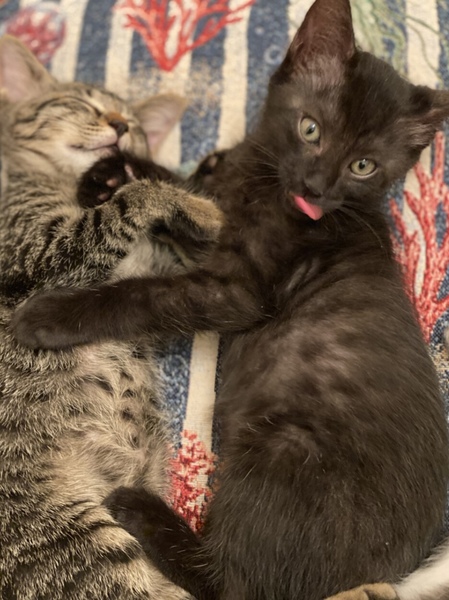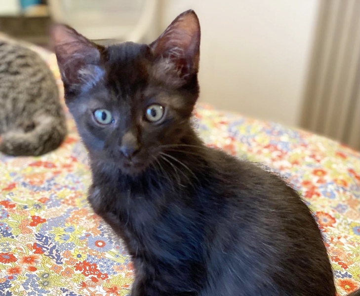 | 特徴(性格など) | *特徴 黒い毛色ですが、毛質がふわふわなので、漆黒というより 黒色がちょっと淡くうつります。 後ろ足の腿辺りの毛だけ少しタビーが残っていますが 赤ちゃんのときに比べて薄くなってきていますので 今残っているタビーも、成長とともに徐々に消えていくと思います。 尻尾は先端だけ少し曲がっています。 愛護センター収容時に、幼齢で体力がなく しっかりご飯が食べられずにいたため 保護された段階では月齢に対して小さめでした。 センターから引き出された後のメディカルチェックにて 複数の寄生虫が検出されましたが お腹の駆虫がすべて終わり、体調が戻ってくると 今までの分を取り戻すかのようによく食べるようになりました! 今では体重も順調に増えており、体調も安定しています。 *健康状態 とても良好です。食欲旺盛で、快便です。 エイズ、白血病検査はともに陰性です。 保護時、数種の寄生虫に感染しておりましたが、駆虫薬にてすべて除去しました。(検査済みです。) 幼い月齢だったので投薬後、便の状態が安定せず療養食のを食べながら、地元ボラさん宅で療養しました。 現在、軽度の皮膚真菌症の治療中が終わり、経過観察をしております。 先住猫さんがいらっしゃるお宅への譲渡は、お引き渡しの時期が、10月後半以降での調整となります。 ご理解、ご了承下さいますよう、よろしくお願いいたします。 *性格 兄妹で保護されて、ずっと同世代の猫さんたちと一緒に 育ってきたせいもあり、好奇心旺盛で 人見知り場所見知り猫見知りなどもせず 環境が変わっても安定した情緒で元気に過ごしています。 おもちゃで遊ぶのも大好きですし、猫さん同士関わってもよく遊び 新しく来た猫さんにも積極的にも遊びに誘ったり、現保護主宅の先住猫さんにも物怖じせずに ひっつきに行っています! 自分の感情をストレートに行動に移せるとても素直なところが本当に可愛いです! デスクワーク中は、気づくと側にくっついて毛づくろいや お昼寝をしています。 思わず手を止めてナデナデさせてもらっています。 人でも猫さんでも誰かの側にいることが多い事が多い甘えん坊さんです。 ちょうど今の時期が子猫さんたちと触れ合い、関わりながら 社会性を学んでいる時期になります。 先住猫さんがいらっしゃるお宅や、2頭同時に譲受けてくださる方を優先させて頂きたいと考えております。 どうぞよろしくお願いいたします。 |