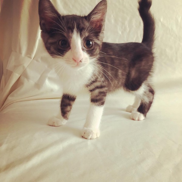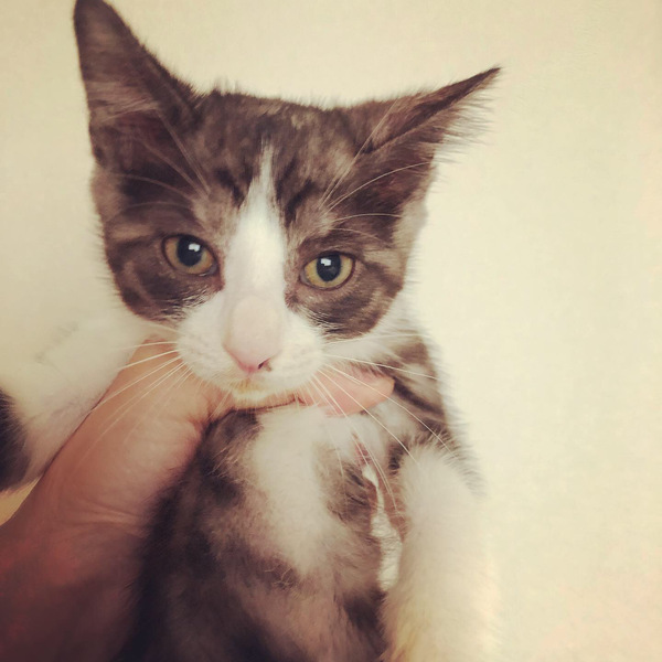 | 特徴(性格など) | 【呼び名】ぐーちゃん 【外見】サバ柄のはちわれ。しっぽは長くて先が小さい鍵しっぽ。 【性格】人なつこくて甘えん坊です。一緒に保護した4きょうだいの中では、マイペースなタイプ。猫も人も大好き。 【健康状態】FIV陰性。FeLV陰性。とても元気ですが、現在真菌治療中。一緒に保護した4きょうだいの一匹に軽い症状があり、きょうだい全員で投薬、シャンプーで治療中です。10月下旬に投薬終了&検査、結果が出るのに2週間かかる予定ですが、その前でもお見合いは歓迎です。 |
