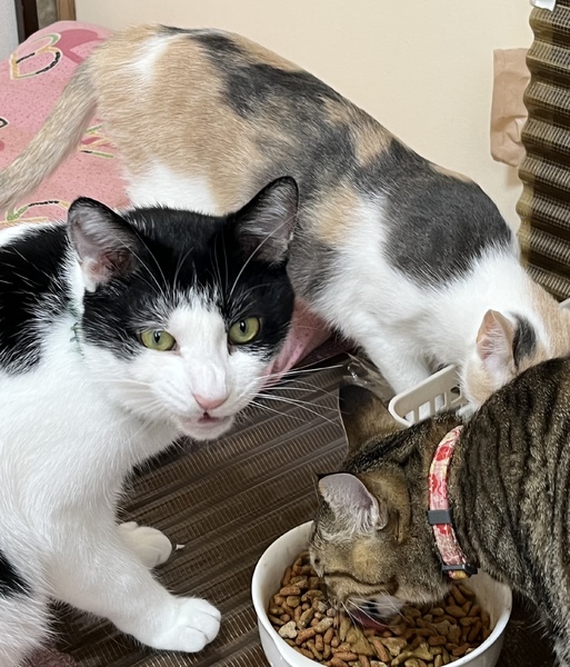 | 特徴(性格など) | ハチワレの毛並みですが顔がパッツンです。歳下の猫ちゃんにとても優しく接してくれます。飼い主には体が大きい反面甘えん坊のところがあり寝る時は横に来て添い寝しています。 | ||