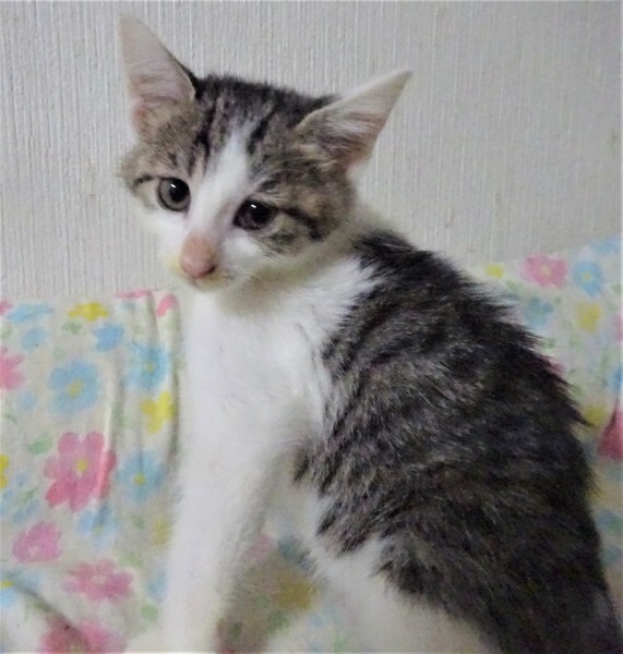| 特徴(性格など) | 仮名: ののこちゃん(メス) 毛色: キジ白 正確: ケージを開けて手を出すと、もう手をよじ登って肩に乗っています。ミルクから育っているので人馴れは問題なく、威嚇もしません。 他猫とも上手く付き合えるようです。 少し大人しい方です。 激しいにゃんプロはしませんが、姉妹で大人しいプロレスはしています。 あまり大声で鳴く事もなく、猫飼い初心者の方でも大丈夫と思います。 姉妹のねねこちゃんと仲良しなので、一緒のお家が希望ですが、優しい先住猫がいるとか、1頭飼いしか出来ないという方でもご相談ください。 ノミ取り済 検便済 駆虫済 3種混合ワクチン済 猫エイズ・白血病ウィルス検査はともに陰性 |