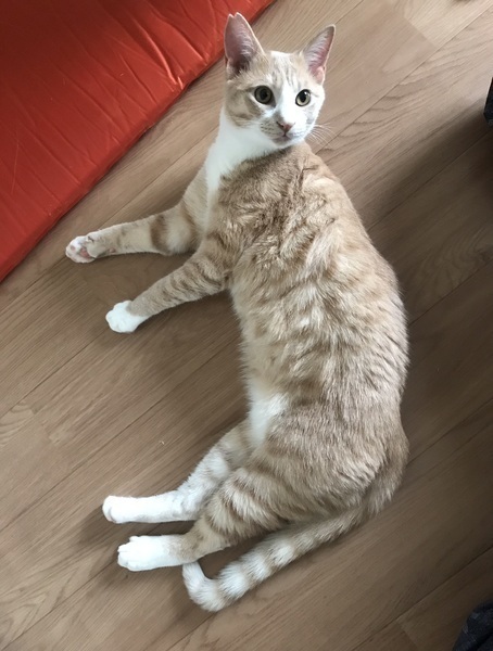 | 特徴(性格など) | くり パステル茶トラ、白手袋ソックス 小顔、スリムな美男子 とにかくかまってちゃんです 猫じゃらしジャンプ遊び大好き、遊びと添い寝の要求鳴きがあります。声高め。 かまって欲しくて指をチミチミ甘噛みされます兄弟1番のジャンプ力。 遊びの要求に付き合いが出来る方希望。 怖がりで人見知りするので慣れるまで少し時間がかかるかもしれません。 |