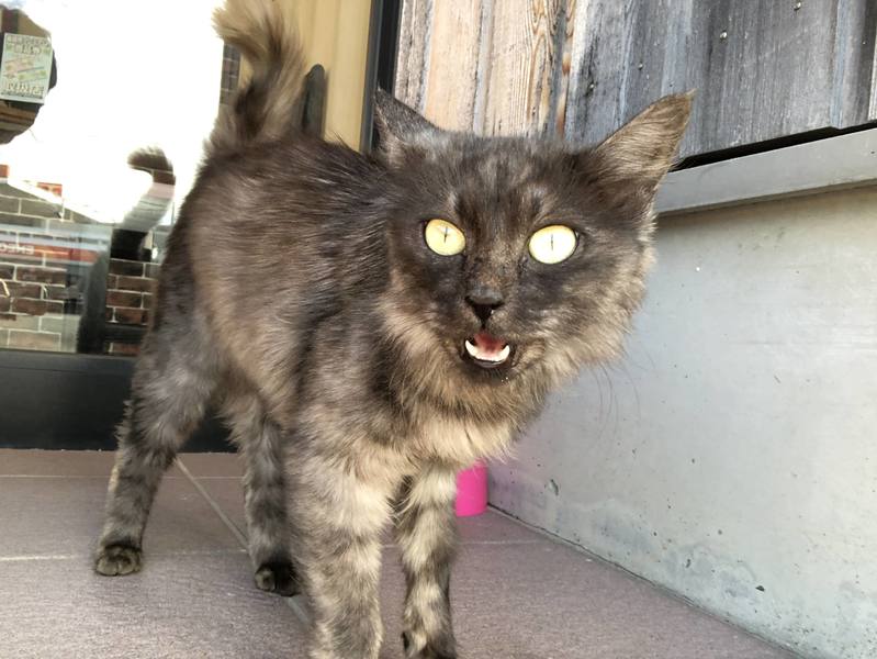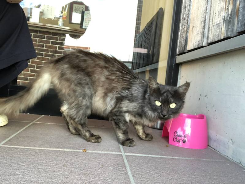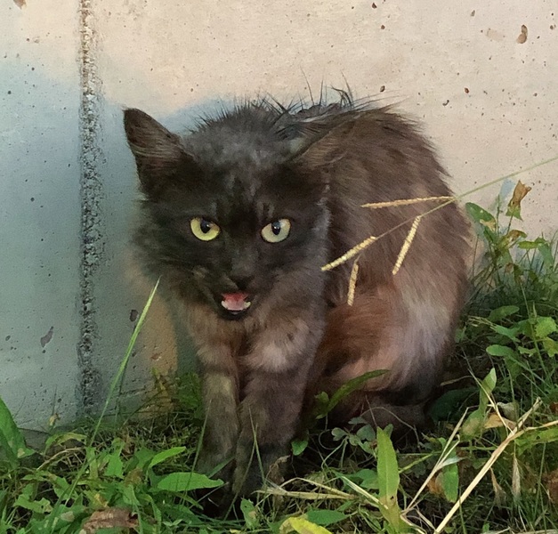 | 特徴(性格など) | 全体は黒っぽいですが、まだらにグレーや白っぽい毛が混じっています。 (サビ柄とはちょっと違うのかも…?) 尻尾が長くエレガントな毛並みをしています。 瞳は黄色です。 野良猫なので、初めは恐る恐る近づいてきていましたが、 今では人に慣れて、目が合うと鳴きながら近づいてくるようになりました。 足元にスリスリもしてくれ、甘えたさんな印象です。 |