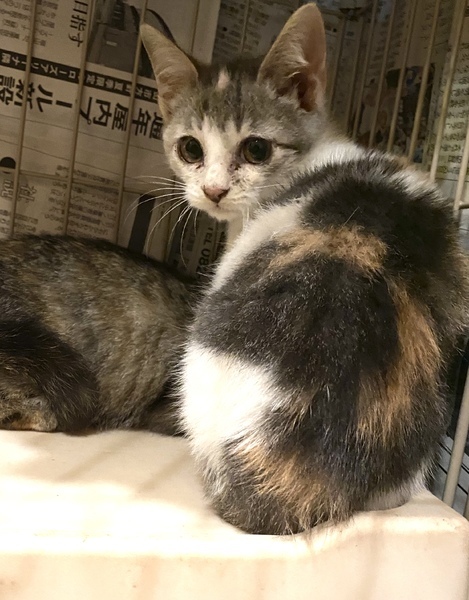 | 里親募集する理由 | 【私、メグです】 ナツと一緒に生まれました。 お母さんと一緒だったけど、風邪をひいてちょっと辛かったの。 ある日ナツと一緒に暖かくてお腹いっぱい食べられるところに連れてこられてビックリ。 ナツはすごくビックリしてたけど、私はナツより大人だから大丈夫だったわ。ナデナデも抱っこも大丈夫。 ナツと一緒だしなかなか居心地はいいと思う。 これからずっとのお家を見つけてもっと幸せになるの! 【保護の経緯】 未手術の餌やりの所をTNR中に保護しました。 ※2021年11月6日(土) 横浜市港北区大倉山バディどうぶつ病院さんのレンタルルームでの保護猫譲渡会に参加予定です。 ※活動内容をブログで紹介しております。ぜひご覧ください。https://ameblo.jp/kumichie3/ 譲渡会をはじめ、随時お見合いも行なっております。一匹でも多くの猫を温かい家庭に迎えて頂けるよう活動をしております。 |