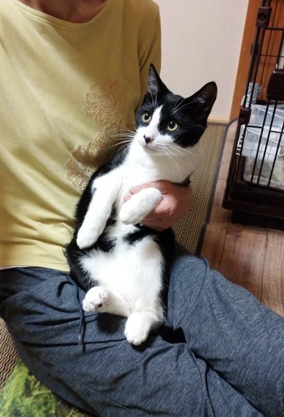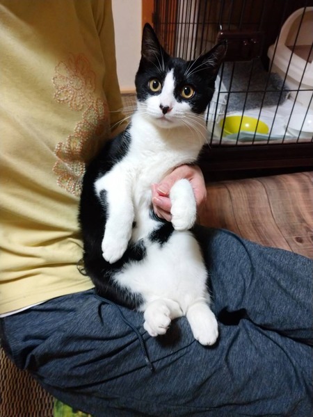 | 特徴(性格など) | ※毛色、白黒ハチワレ 性格は温厚で人馴れしてきています。 初めは緊張すると思いますが、馴れてくると抱っこもOKの 性格ハナマル? 推定年齢 5ヶ月半で、まだまだ子猫らしさが残る可愛い子です。 お顔立ちも可愛らしいです。 |