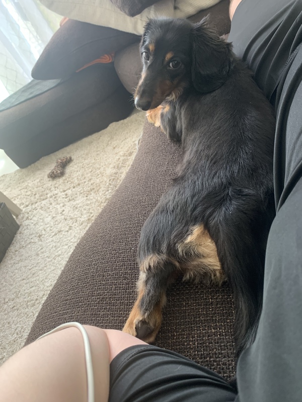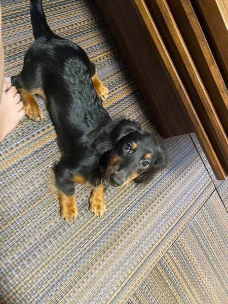 | 特徴(性格など) | カニンヘンダックスフンドですが、サイズはミニチュアサイズです。体重は6〜7キロです。 寂しがり屋で甘えん坊 寝る時は仰向けで、ぐでーっと寝ます お手、おかわり、お座り、伏せ、待て、ぐるん、バーンなど出来ます 私にはしませんが、知らない人にはたまに吠えたり、甘噛みします ただ、慣れると大丈夫です 私は、アパートで飼ってます |