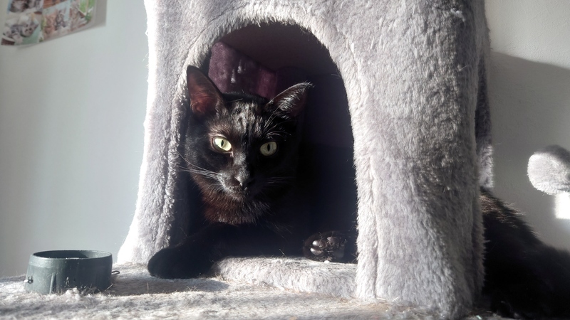 | 特徴(性格など) | ・黒に茶色のサビ柄。 ・人が大好きで、客人にも撫でて撫でてとすり寄ります。小さい頃から人馴れしており人見知りしません。 ・メス(避妊手術済・ワクチン接種済) ・体重3.4キロ ・白血病ウイルス、猫エイズともに陰性。 ・完全室内飼い。 |