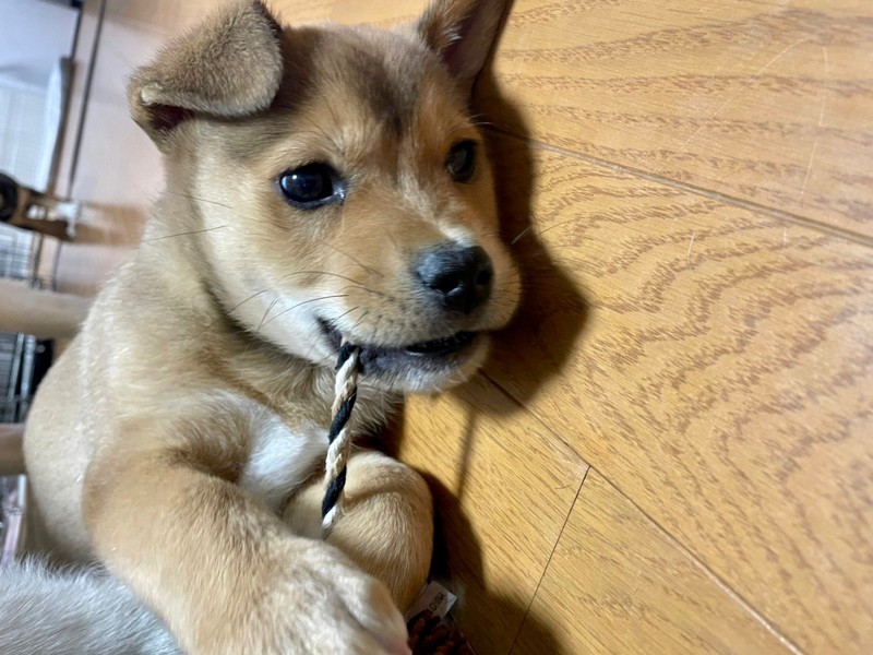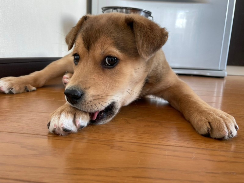 | 特徴(性格など) | 【仮名】ひろゆき 【生年月日】推定2021年8月下旬頃生まれ 【種類】MIX 【サイズ】両親は不明ですが将来は中型犬(15kg)以上になると思います。 【毛色】フォーン 【性別】オス 【去勢】未(適正時期に必ずお願いします) 【ワクチン】6種混合ワクチン1回接種済 【駆虫】ドロンタールプラス・ネクスガード1回済 【健康状態】食欲もあり元気です。 【性格】どちらかと言うと穏やかだが、あまり臆病ではなく、落ちついています。 名前を呼ぶとシッポを振って来てくれる事もあり、抱っこは嫌がりません。 先住犬にも怖がらず自分から誘って遊んでいます。おもちゃの取り合いをしても怯まず、食い付いています。 力では負けてしまうけど絶対諦めない強い子です。 今の所ですが慣れるのに時間はかからなそうな子だと思います。 |