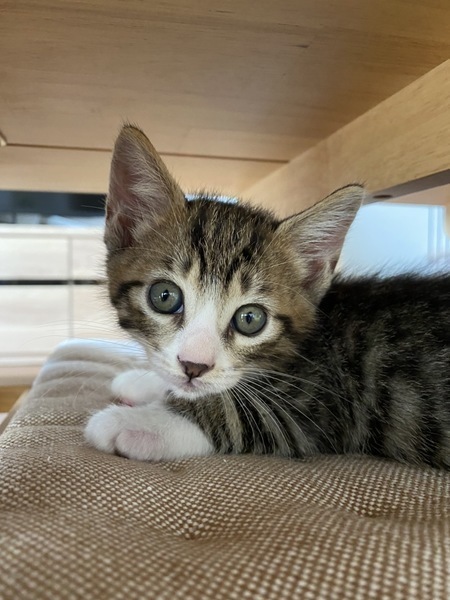 | 特徴(性格など) | ◆あきづきくん 小さい子供にも慣れたキジ白子猫 ●月齢の小さな子猫は、以下の条件についてご了承の上で応募をご検討下さい。 ◆高齢者のみのご家族からの子猫のお申し込みはお断りさせて頂きます。 ◆お留守番の少ないご家庭を希望します。 ◆小さなお子様のいるご家庭は状況によりお断りする場合がございます。 ○神奈川県の宮ヶ瀬ダムで保護されました。 ○生後約2ヶ月くらい(2021年10月中旬時点)のキジトラ白の男の子です。体重は0.85kgです。 ○尻尾は鍵しっぽです。ハチワレ柄で、鼻の頭だけ黒いところがチャームポイントです。 ○よく食べ、よく遊び、よく寝ます。 ○お膝の上にも乗ってきますが、小さい子供にも慣れていて、自分から寄っていきます ○同じく里親募集中の「にっこり」とは兄妹です。寄り添っているのが大好きで、とても仲良しです。遊ぶ時寝る時いつも一緒です。 ○元気にすくすく育っています。 ○まだ小さな仔猫のため、お留守番の少ないおうちをお待ちしております。 ★猫エイズ、猫白血病ともに陰性。 ★ワクチン接種1回済み ★不妊手術は、成長と体調をみて近日中に実施予定です。 ○10/24(日)開催の譲渡会に参加予定! 以下の要項をお読みいただき、ぜひ会いに来てください♪ ☆★☆★☆★☆★☆★☆★☆★☆★☆★☆★☆★☆★☆★☆★☆★☆★☆★☆★☆ ~10月24日(日)市ヶ尾にて譲渡会開催!~ ◎場所・・「東急ドエル市ヶ尾プラーザビル2階集会場」 神奈川県横浜市青葉区市ヶ尾町1154-2 田園都市線「市ヶ尾」駅西口より徒歩約2分 ◎日程・・10月24日(日)(雨天決行) ◎時間・・13時から16時(受付は15時30分まで) (会場に利用可能な駐車場はございません。近隣のコインパーキングをご利用ください。) *3密対策のため、当日12時30分より会場にて全時間分の整理券を配布いたします。整理券枚数には限りがございますので、上限に達した場合はご入場できません。 *参加の際は、マスクの着用、アルコール消毒のご協力をお願いいたします。 *当日は検温の上、体温が37度以上の方はご参加いただけません。 *混雑状況により、中止させていただく場合がございます。 ※参加予定の犬猫は体調により参加できない場合があります。ご了承ください。 ☆★☆★☆★☆★☆★☆★☆★☆★☆★☆★☆★☆★☆★☆★☆★☆★☆★☆★☆ |