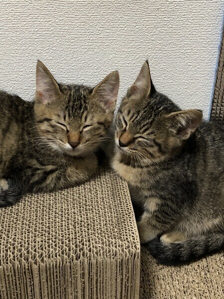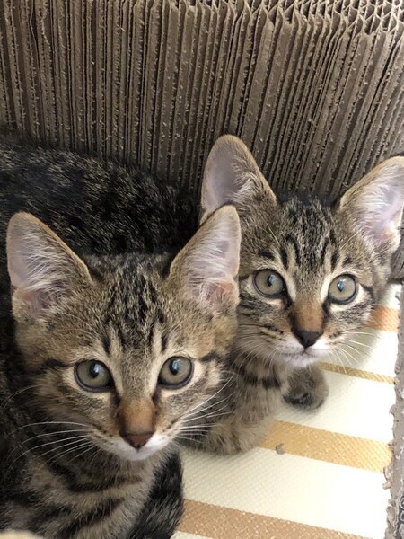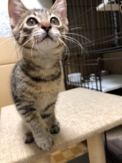 | 特徴(性格など) | 最初は4兄妹の中で一番怖がりさんかなと思いましたが、今は人にも慣れて一番にゴロゴロお腹を見せてくれるまでになりました。とてもかわいい声で甘えてくれ、兄妹と元気に遊んでいます。 ご飯はカリカリもウェットも食べられます。 トイレは決まった場所でちゃんと出来ます。 キジトラでアイラインばっちり、尻尾の長い美人さんです。 10/6 ワクチン、レボリューション実施済み 10/9 検便済、異常なし 10/19 猫エイズ、白血病の血液検査済、陰性 11/8 2回目ワクチン済 野良猫の子供で、飼い主がいない事は確認しています。 |