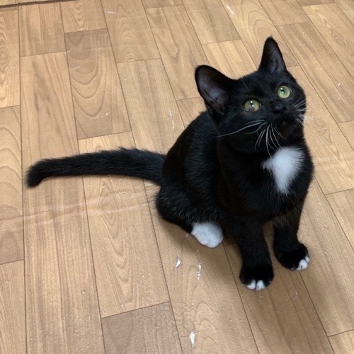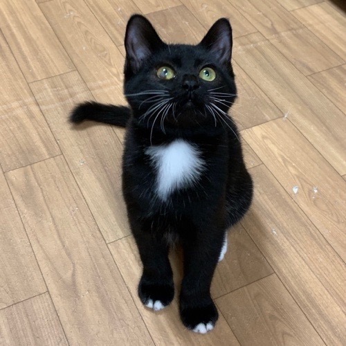 | 特徴(性格など) | 白いおひげとふさふさ胸毛、パンツをはいたような腹毛、そして可愛い靴下がチャームポイントの可愛い黒白さんです。 毛量が多く、ビロードのような触り心地です。 右目(向かって左目)の下側に少しだけ風邪の後遺症で濁りがありますが、ほぼ気にならないレベルですし、もちろんきょうちゃんは何も気にせずふつーに生活しております(笑) 人間を遠くからでも鳴いて呼んできます。 目を見て鳴いて、コミュニケーションがとれる猫さんです。 とにかくべた馴れで、すぐにお膝に乗ってきて ゴロゴロすりすりと甘えてきます。抱っこも嫌いではないようで、気持ちよさそうにまったりしています。 爪切りも大人しくさせてくれるとてもえらい子です! もちろん遊びも大好き! 他の子猫と毎日楽しそうに遊んでいますが、1人遊びも上手に出来るタイプです。 子猫は誤飲も心配ですので、お部屋をしっかり片づけていただけて、脱走対策・健康管理を徹底して下さる里親様とご縁がつながると嬉しいです。 |