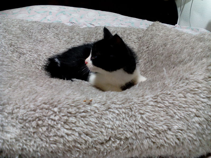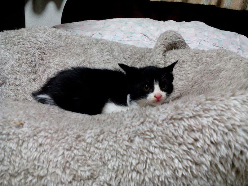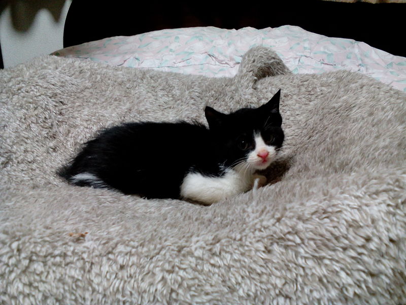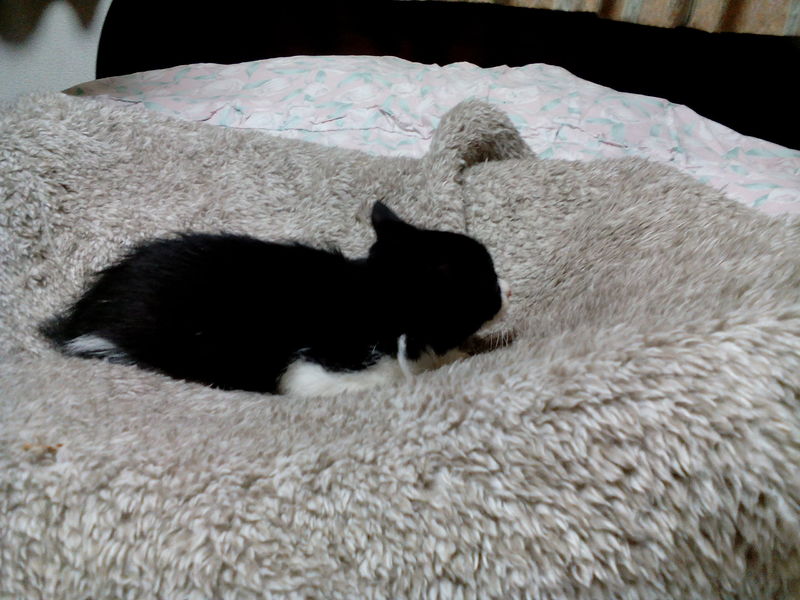 | 特徴(性格など) | 色柄白黒。ハチワレにピンクの花が可愛いい。模様はほぼ左右対称。真っ直ぐ尻尾少しひとみしり。食欲旺盛で元気いっぱいです。母猫はエイズ陰性、白血病陰性。 | ||