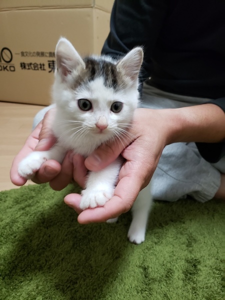 | 里親募集する理由 | 親戚の家の近くで保護して、只今自宅で育てています。 保護してまだ一週間未満でまだ病院には連れて行っていません。小さいため、自分では性別分かりません。 最後3ヶ月くらいからワクチン接種可能のため、未接種です。 病院に連れて行き、オスと判明しました。 自宅では2匹猫を飼っており、保護した仔猫3匹は部屋を隔離して育てています。 全員食欲あり、元気に走り回っています。トイレできます。 |