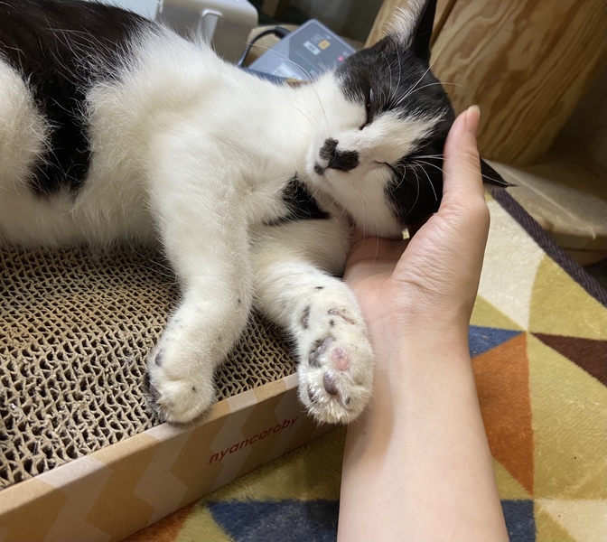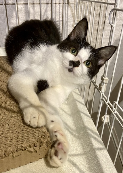 | 特徴(性格など) | ベビーフェイスな丸顔のハチワレさん(後頭部もハチワレ^_^)少し慎重なところとありますが、疲れ知らずのおてんばで、撫でてもらうのが大好きで短めの尻尾をピコピコ動かします。とてもマイペースなのになると思います! https://youtube.com/shorts/DZwDkWxP2-0?feature=share |