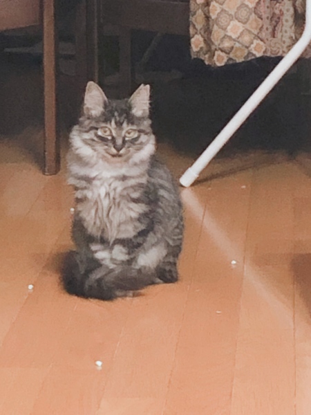 | 特徴(性格など) | 半長毛、しっぽ長いです。 脚の先っぽのみ白いです。 猫も人も大丈夫ですが、基本的に怖がり ちゃんなので慣れるまではあまり自分からは 近づいて来ませんが、慣れるとスリスリゴロゴロで、くっついて来ます! |