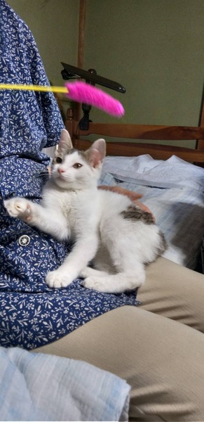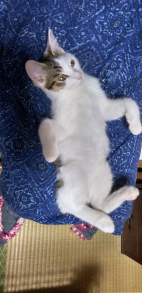 | 特徴(性格など) | キジ白柄。尾尻短くボブティル。甘々のお膝抱っこ好きな可愛らしい子です。 お顔は女の子に間違えられるくらい可愛らしいです。鳴き声も小さく可愛らしいです。 先住猫ちゃんいる方又はお留守番短い方優先希望致します。 トライアル期間あります。 |