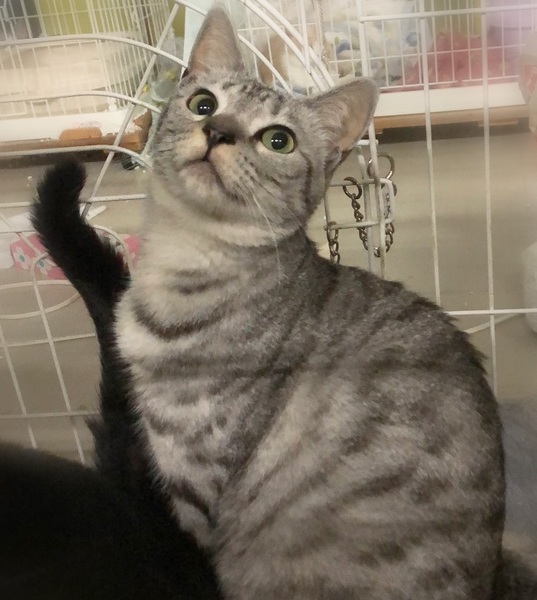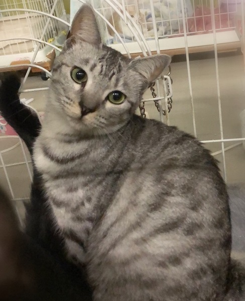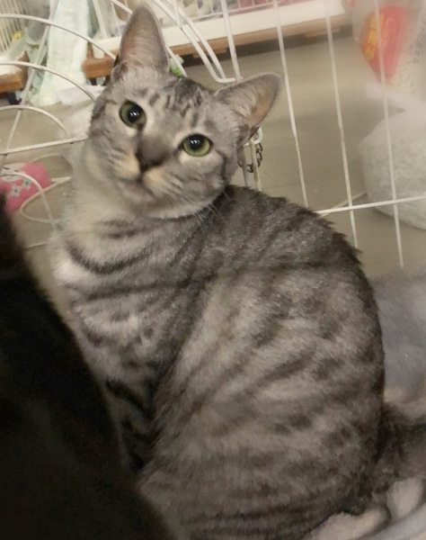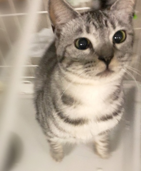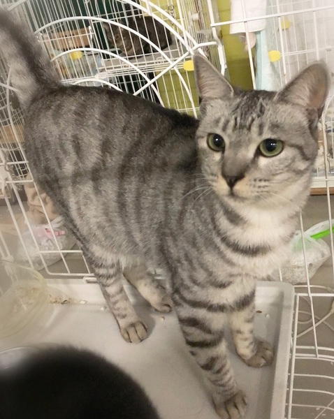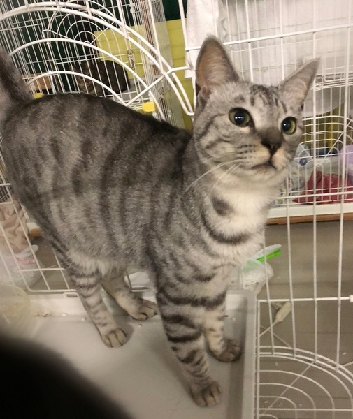 | 特徴(性格など) | 明るいグレーサバトラ色の女の子 環境に慣れるまで、ケージが必要になると思います。 周りを見て安心してくると、ご飯や甘えたくて撫でて欲しい時はしっぽを上げて表現してくれます。 ゆっくり見守りながらお付き合い下さる方を希望します。 |