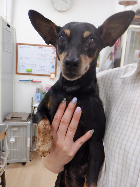 | 特徴(性格など) | 名前:シェリー ミニチュアピンシャー 6歳くらい(獣医みたて) 毛色:ブラックタン とっても綺麗な顔をしています。普段はとっても穏やかですが猫には威嚇します。犬同士は問題なく過ごせます。人に対しては友好的です。 行った医療措置 不妊手術 乳腺腫瘍摘出手術(腫瘍は病理検査に提出中) 6種混合ワクチン 蚤ダニ駆虫済 腸内寄生虫駆虫済 マイクロチップ装着 フィラリア検査:陰性 血液検査:異常なし パテラ後ろ両足(G2)今の所生活に支障はなく要観察です。 少し肥満気味なのでダイエット中です。 食欲もありとっても元気に過ごしています。 |