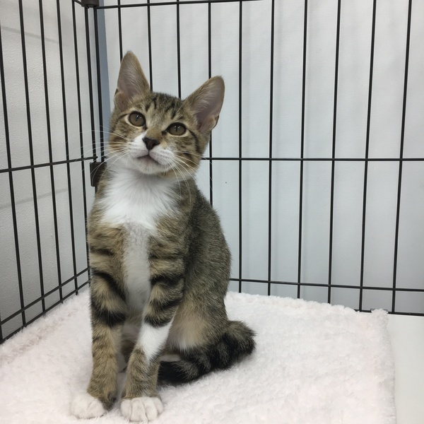 | 特徴(性格など) | キジ白ハチワレ、かぎしっぽの男の子です。 4兄弟で一番最初にゴロゴロなついてくれました。 元気で明るい子です。 ・ワクチン1回目接種 ・エイズ白血病検査陰性 ・ノミマダニ駆除済み ・マイクロチップ挿入済み ・去勢済み |